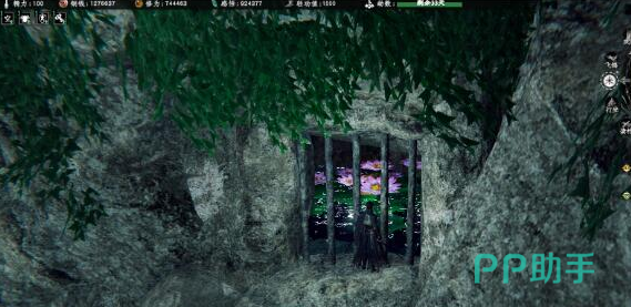 瀑布会分成上下两层,玩家可以直接跳到瀑布中间位置,这里就有一个隐藏的洞口。在这里就可以看到有许多的机关,箭头在调整时是按照前右后的顺序去摆放。一旦在调整正确之后,就可以直接触发机关联动。机关启动之后,莲花池的大门就会打开,大家可以看到在池水中还会漂浮着一些特殊的莲花。只要服用莲花就可以获得30个悟性,5000个属性加成,可以大幅度的提升角色的潜力,整体的优势还是很不错的。