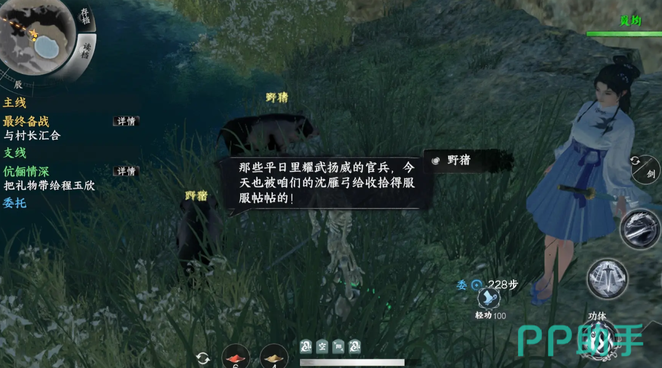 书籍则需要玩家前往到集市内,偷听NPC对话,触发金光谱旁的任务,在这之后,直接前往到村外的(1115,1431)处,解救洗星海三人,在这之后,玩家要前往到何佑的猪圈处,拿取解药,猪圈的具体位置是(1122,1457)。