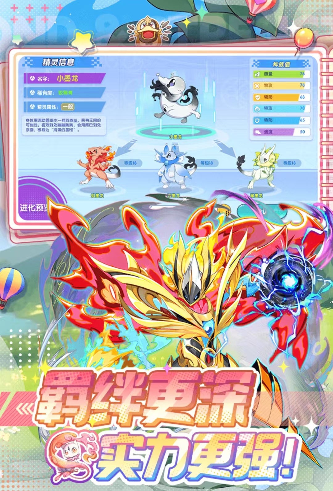 正版IP授权的游戏,宝可梦竞技比赛,皮卡丘,妙蛙种子等宝可梦和玩家并肩作战出席战斗,收集养成宝可梦,提升它们的技能和战斗值。各种宝可梦经典大招再现,经典技能搭配游戏特效,再现宝可梦竞技的精彩。轻竞技,强调趣味和社交,可与好友在线沟通,多人组配作战,重现宝可梦世界。