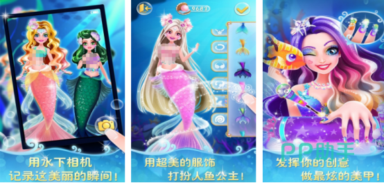 以美丽的人鱼公主作为主要题材,讲述的就是即将要参与到海洋美妆秀,恳求玩家利用自己的审美,为其中的美人鱼公主进行全面的打造,提供了丰富多样化的服饰类型以及各种化妆品,相信在玩家的一手操作之后,将会让美人鱼公主成为美妆秀当中最时尚的人物角色,其中有各种各样颜色的指甲油或者是精美的服饰饰品等等。您可以尽情发挥自己的喜好和审美。