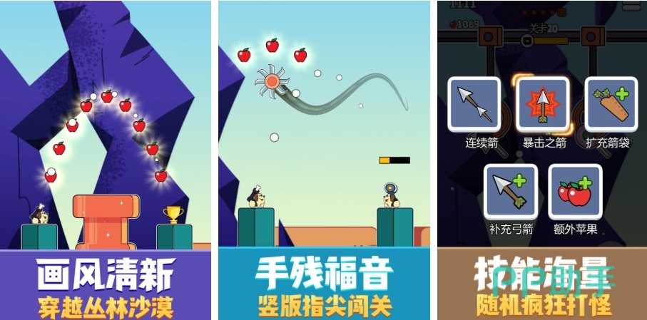 面对形态各异的敌人与特色boss,玩家将化身风格迥异的弓箭手,在丛林、沙漠等清新场景中射击,同时灵活闪避障碍物。战斗途中可能突然射中悬空的苹果,甚至遭遇来自外星的意外访客。通过不断解锁随机技能组合,玩家能打造专属战斗流派。对蓄力射击的节奏把控,射击刁钻角度的预判瞄准,都考验着冒险者的操作技巧。