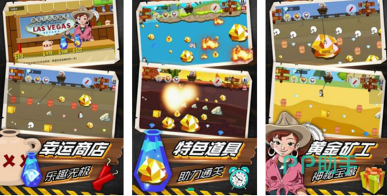 游戏上线的时间比较久,虽然操作的方面特别简单,但是却总是会给玩家带来无尽的体验感,比如在开局之后将会呈现出一个钩子,玩家可通过点击屏幕并释放钩子的方式,成功抓取各种物品。在钩子摆动的过程当中,就需要通过精准瞄准的方式收集大量的黄金,还有各种宝藏。精美的游戏关卡也提供了多样化的道具类型,比如幸运三叶草或者是冷冻箱等等。