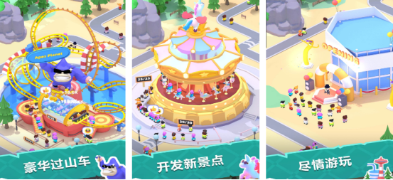 卡通的画面,还以创意的玩法为核心,玩家将要用心去建立自己的游乐场环境,一切都需要从零开始,刚开始可能只是空旷从未被开垦过的环境,但通过自己合理规划以及合理策略的方式,就能够建设出特别繁华的游乐场环境。通过完成任务的方式提高设备的运营效率,以此给游客们带来更好的生活环境,从而赚取更多的金钱,通过完成任务的方式就能解锁更多全新项目,扩大游乐场环境。