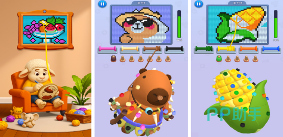 无论多大年纪的人群,都可以在这款游戏当中尽情释放自己的坏心情,也可以锻炼自己的观察能力,每一张图案中都会有各种颜色的毛线条堆叠在一起,而玩家需要从中寻找到相同颜色的毛线球,要将三个毛线球放在一起,就能够解锁更多丰富的色彩,还可快速消除。根据玩家的仔细观察就能绘制出独具特色的像素画作。