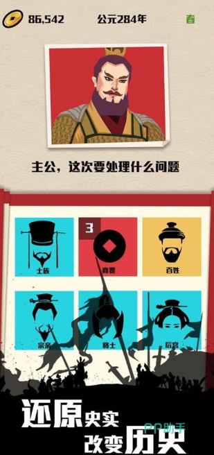 游戏将治国理政转化为一场动态平衡游戏:面对宗亲的贪得无厌、士族的高傲清流、武将的鲁莽直率、百姓的易怒情绪以及后宫的明枪暗箭,你每个决策都将引发连锁反应。数值系统完美模拟现实政治生态——提高士族俸禄可能招致军队不满,强行征税虽能缓解财政危机却可能点燃民变火种。当战事突然爆发,你必须孤注一掷投入巨额军费,这场豪赌将决定你是国运昌隆还是江山易主。