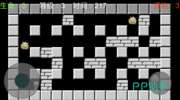 本作其实就是FC时代炸弹人的移植版单机游戏,你将化身弹珠超人在地图上放置各种炸弹完成过任务,利用炸弹去消灭所有的怪物就可以顺利通关,特殊的操作性方式和很快的游戏节奏都是亮点,摧毁砖块还可以获得随机的道具增强实力,比较复古的环境跟灵活双轮盘操作给人一种玩FC游戏的感觉。