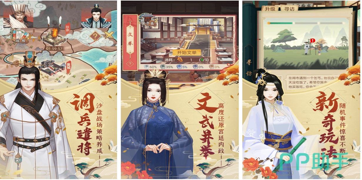 这是款拥有唐朝时代背景的模拟经营朝廷的游戏,你会穿越到唐朝时期以皇帝的身份完成冒险,超前的角色扮演设定和冒险机制深入人心,扮演皇帝跟妃子、大臣互动的性质代入感更强,文字对话的特殊机制容易让玩家沉浸在古代世界中,古典的背景和绚丽的配色也是这款佳作的主要亮点。
