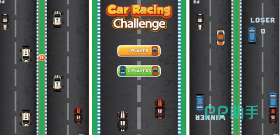 简单易操控的赛车对战小游戏,通过分屏控制车辆完成竞速,分数高低来判定胜负极简的操作,非常强调竞技性。两名玩家各使用一部手机,通过分屏控制完成实时对战,整体的操作门槛极低,与传统的竞速游戏相比,能够轻松上手并及时反馈。