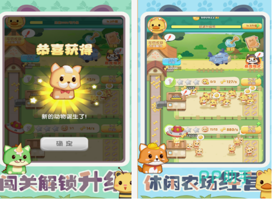 里面所有的狗狗都是有不同的造型,长相很可爱的,每一个玩家都可对其进行收集的方式,打造出狗狗梦工厂。也是模拟了经营农场这样的玩法,只不过它里面主要养的就是可爱的小狗狗。为了可以获得更高的收入,玩家通过不断出售狗狗以后,就可以利用所获得的收入,来升级各方面的设施,扩大农场的规模,使狗狗的数量也变得越来越多。