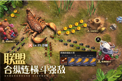 玩家将化身蚁后,开启微观世界的宏大征程。游戏以真实蚂蚁社会为蓝本,构建出地底蚁巢与地上丛林交织的立体世界。工蚁搬运资源、兵蚁守护领地、特化蚁各显神通——金甲蚁冲锋陷阵,熊猫蚁辅助增益,死神蚁远程暴击,百种蚂蚁各司其职。玩家需合理规划蚁巢布局,研发科技解锁新区域,还能加入联盟与盟友共御强敌。游戏采用3D超写实画风,沙砾的纹理、水流的动态都纤毫毕现,搭配虫鸣鸟叫的沉浸式音效,仿佛置身真实自然。