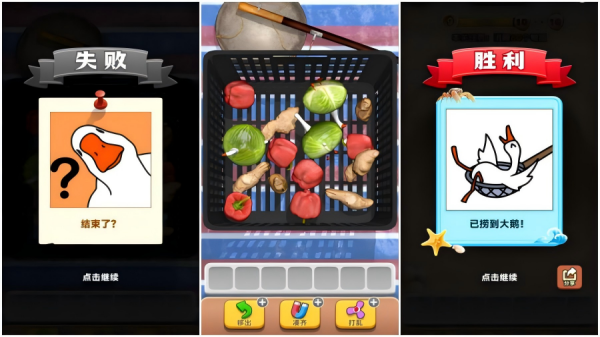首先为大家介绍一款受欢迎的休闲益智游戏《抓大鹅》,此游戏以消除为基础玩法,却摒弃了传统的物品秩序井然排列方式,所有等待消除的物品被随机叠放在了篮子里,更具趣味性。游戏娱乐方式是通过点击相同物品进入游戏下方的七个卡槽中,三个相同物品即可完成消除。在娱乐模式上,游戏提供了农场、菜市场等七种场景供大家娱乐。