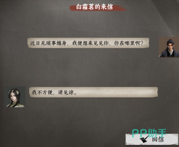 更让人烦恼的是,即使飞鸽传书提示她在云萧山庄,玩家实地前往也可能找不到她。在这种“剧情外看不到NPC”的情况下,建议使用游戏内的飞鸽传书功能,选择“我要拜访”选项,说不定可以获取她的所在或触发后续对话,否则NPC确实可能永远“雪藏”了,不会再出现。