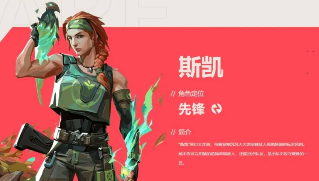 丝凯能帮助回血,并且带有追踪和闪光弹的能力,容错率高操作简单,但由于是信息位需要大家熟悉地图的细节,她的招牌技会放出一个治疗雕饰,长按就可以开始输出治疗能力,治愈范围并且在视线内的队友,需要注意无法对自己进行治疗,她的“辟林”会放出一个袋狼,点击开火会让其向前扑出,一旦被扑到的话会受到震荡与输出;