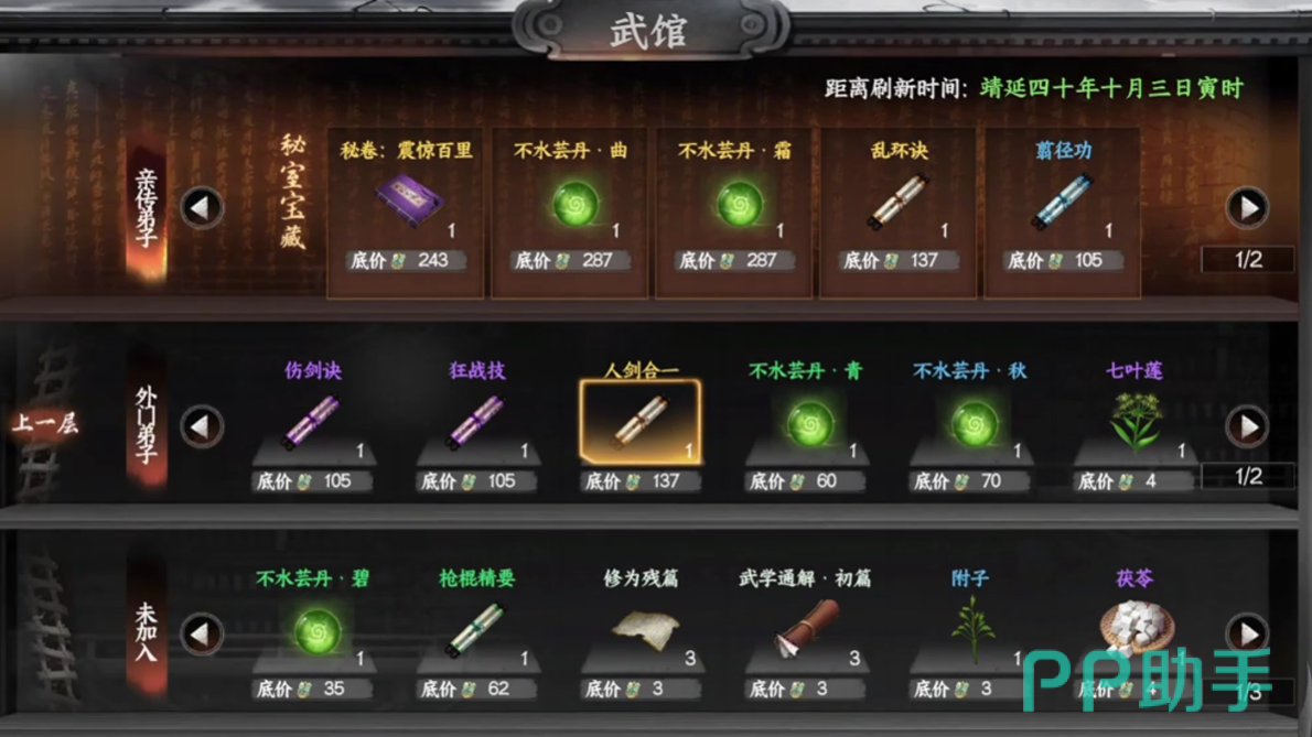 然后就是人剑合一的获取,人剑合一需要玩家到达淮陵的(141,572)获得,在这里玩家会看到一个武馆教头,直接与武馆教头进行交易就可以得到人剑合一的功法;斜风细雨卷则需要玩家们到达麓山书院,在麓山书院成为内门弟子后就可以直接用令牌进行兑换,获取方法很简单但是在获取之后,玩家还需要购买化境卷潇湘剑雨,将获得的潇湘剑雨提升到化境期,此时太乙分光剑的武学就全部集齐了,玩家们可以直接解锁太乙分光剑。