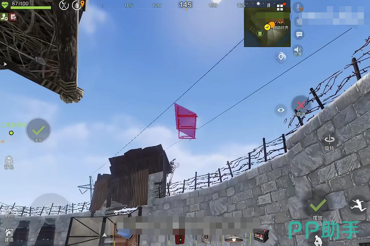 基地选址决定生存概率。理想位置是安全区(牧场、谷仓等绿色标识区域)附近的山体凹陷处,既方便快速撤退,又利用地形隐蔽。初期基地无需复杂,能放下领地柜、熔炉和几个箱子即可。建造时外层用木墙,内层设置双层门和走廊陷阱,资源分散存放在多个箱子中,降低被一锅端的风险。夜间避免手持火把移动,以免成为其他玩家的目标。