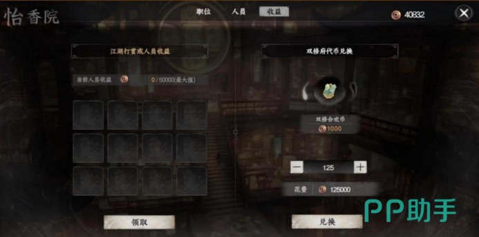 进入到府邸之后,核心的玩法就是青楼经营,玩家可以从小掌柜开始,然后一步一步的经营,最后就可以成为江湖第1楼的老板。一开始手里面只有一间小阁楼,有两个新手姑娘,不要着急扩张。可以先把基础摸透,比如每天早上要去后院看一下姑娘的状态。如果心情值比较低,那么就可以扯一块新的布料或者是买一只簪子,那晚上表演时笑容都会很甜美。才艺如果不够也可以请师傅来教,可以选择舞蹈,可以选择琵琶。才艺越高,那么接待客人时,所给的赏钱也就越多。