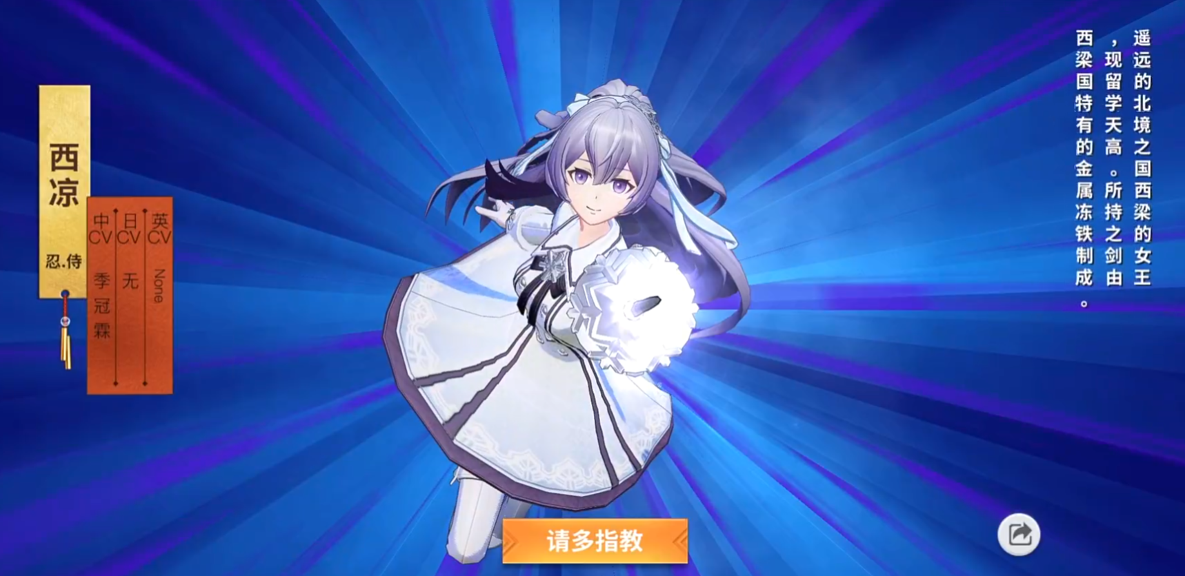 她的终结技“冰华乱舞”会在使用后连续对着前方刺出6剑,并在最后打出终结一击,技能持续期间自身能获得减伤效果,最后的一击每成功命中敌方的一名敌人,就能提升1级等级。