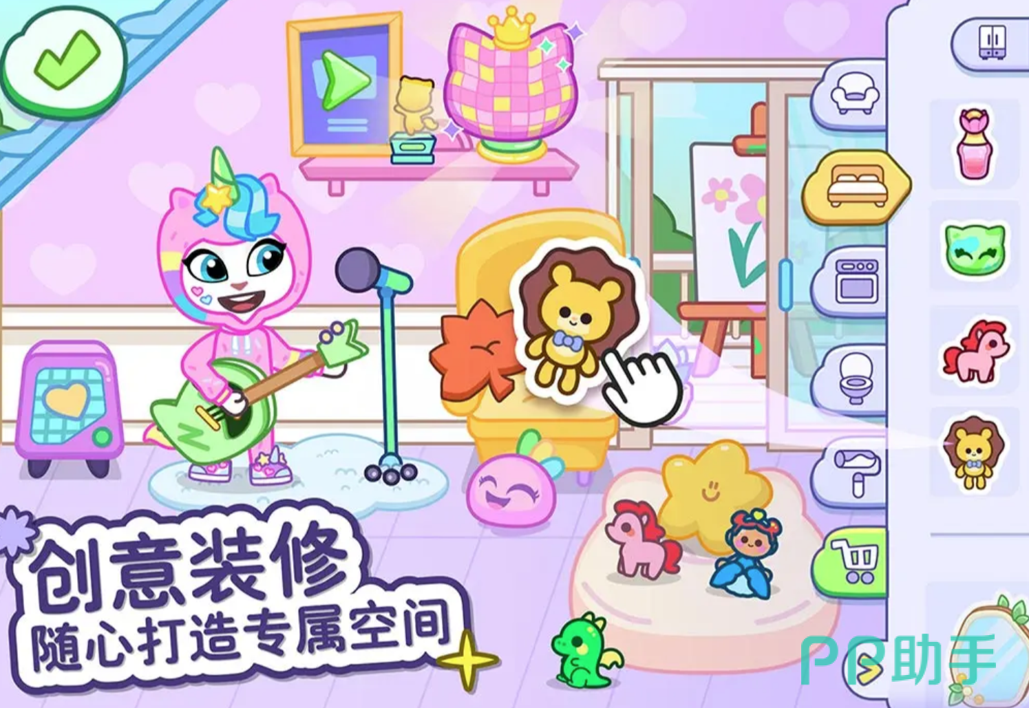 《汤姆猫小镇》这款游戏为玩家精心打造了一个自由、欢乐的世界,在这里,玩家可以自由发挥自己的想象,大家可以亲手设计专属角色,不论是眼睛颜色还是发型穿搭,每一个细节都可以自己进行搭配,除了设计角色,小伙伴们还能编写只属于自己的精彩故事,可以是和汤姆猫家族一起侦破小镇的神秘事件,也可以是记录一场生日派对,故事的走向完全由你掌控,闲暇时,还可以装扮自己的小屋,挑选不同样式的地毯、玩偶以及壁画,打造出一个温馨小屋。