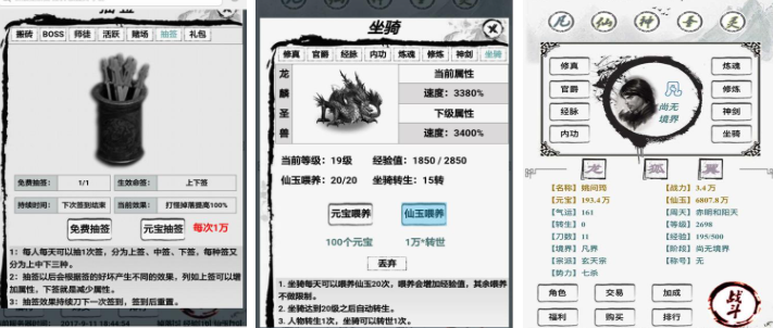 在文字修真游戏中,以细腻的文字描写构建了一个宏大而丰富的修真世界,让玩家在沉浸式叙事中体验从凡人到修真者的蜕变历程,游戏的文字叙事极具感染力,无论是对场景的描写还是对人物心理的刻画,都能让玩家快速代入角色,感受修真世界的奇幻与残酷。