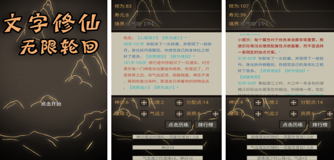 文字修仙无限轮回游戏中,以独特的轮回机制为核心玩法,结合文字叙事与策略养成,让玩家在一次次轮回中不断突破自我,探索修仙的终极奥秘,游戏的核心设定是死亡即新生,玩家角色在修炼过程中若遭遇死亡,玩家可以选择保留部分前世的能力或记忆开启新的修仙旅程。