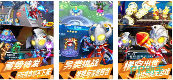 在本作中你将尝试控制各种小小的奥特曼完成闯关任务,采用的是回合制PK闯关模式让奥特曼爱好者着迷,各类新鲜好玩的模式加持也展现出本作的深度,各种能力的怪物强势来袭等待着大家培养奥特曼参与战斗,还加入了多人合作的PK模式让奥特曼一较高下,形形色色的强悍技能期待着奥特曼爱好者学习。