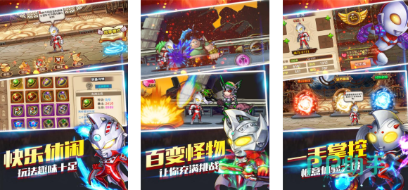 这是款具备着超萌整体画面的他们主题闯关佳作,百变的怪兽也会在关卡中与玩家进行厮杀,休闲愉快的闯关理念跟萌系的UI进行结合,在一些特殊的模式中还可以实现挂机战斗,完善的打击感跟物理碰撞效果更受奥特曼粉丝欢迎,一共数十位强悍的奥特曼战士等待着跟朋友们一起参战。