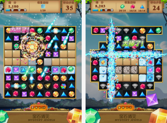 在大家喜欢玩的消除游戏当中,无论是以可爱的小动物,或者是蔬菜水果以及宝石为主,基本上都有着一样的玩法,关于很老的一款宝石消除游戏分享,接下来全部都是可在消除游戏当中,看到各种颜色的宝石,不仅能获得分数顺利通关,还能带来炫酷的画面表现。