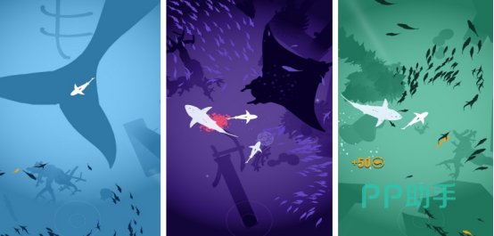 非常可怕的大鲨鱼在这里呈现,化身成为无比饥饿的鲨鱼,在宽阔的海洋当中尽情的捕食觅食,只要比自己小的鱼儿全部都能够吃掉,甚至有很多小鱼群可一口吞掉上百只。有可能在深海当中也会遇到正在潜水的人类,此时千万不要打怯,而是要直接上前攻击对方。游戏画面十分漫画也非常独特,不过并不会给你带来眩晕感,小伙伴们可在这里尽情游动。