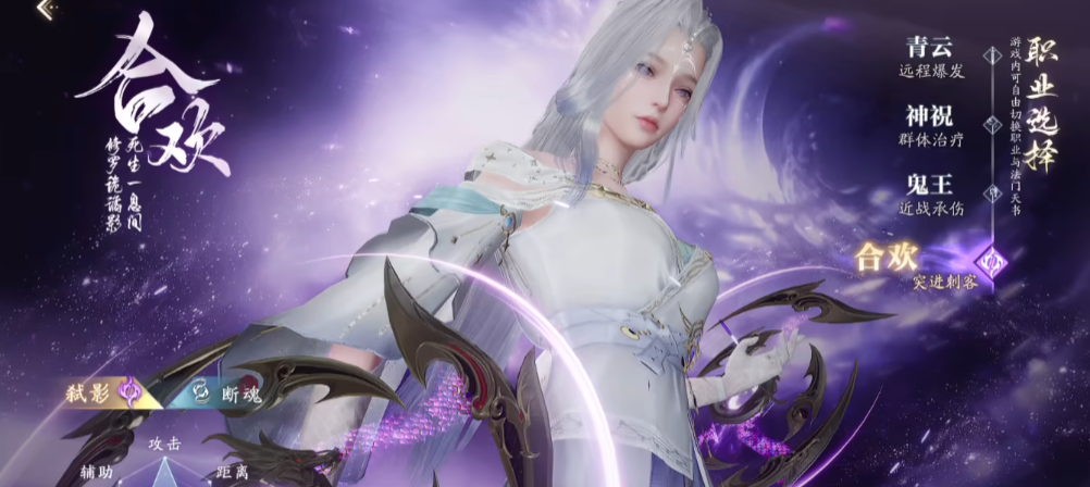 近战物理刺客,主打单体爆发与快速突进。可以瞬间切入后排,秒杀脆皮目标,是PVP中的最大威胁之一。合欢的技能机制讲究连招与普攻能量积攒,只有熟练掌握操作节奏,才能在关键时刻打出成吨的伤害。当然,合欢的操作难度也是四大职业中最高,如果技术不娴熟,就容易出现技能交完总是差一点无法击杀的尴尬情况。而且,合欢身板也脆,可能被反手。因此,想玩合欢也需要有一定预算、有操作经验并且热衷PVP。