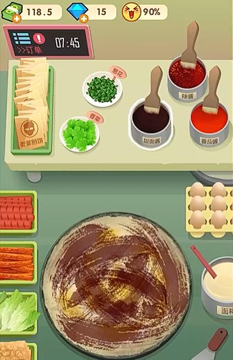 以街头小吃摊经营为核心的竖屏模拟经营手游,主打沉浸式煎饼制作体验与策略经营玩法。真实还原煎饼制作全流程,包括面糊调配、火候掌控及配料搭配,而且玩家可解锁十余种经典配料自由组合,研发新口味吸引顾客,并通过升级设备、优化摊位布局提升经营效率,从简陋路边摊逐步发展为知名连锁店,结合任务挑战与成就系统。