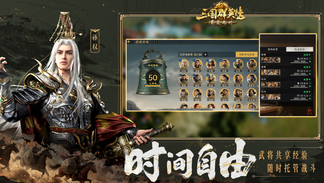 游戏最大的魅力之一,就是它的自由度。你可以随时发起战斗,也可以选择撤离,战斗节奏由你掌控。兵种、地形、时间的自由配合,都让每一场战斗充满了变数。而且,《三国群英传策定九州》并不需要你花费大量时间去升级角色,游戏还设计了共享经验和托管系统,让你能够轻松参与到大规模的战争中,充分体验策略与战斗的乐趣。