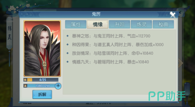 对于那些在游戏中常常为命中不足而苦恼的玩家来说,鬼厉可以说是最强的橙色阵灵选择,尤其是对于合欢门派的玩家而言,鬼厉的暴击加成与其职业特点相配还是很不错的,倘若有幸抽到鬼厉,新手可以说是运气爆棚了,不过在情缘组合方面,其实前两个搭配相对难以达成,但好在雪琪和碧瑶的获取难度稍低一些,玩家只要耐心积攒资源,还是能够比较顺利地凑齐后两个情缘的。