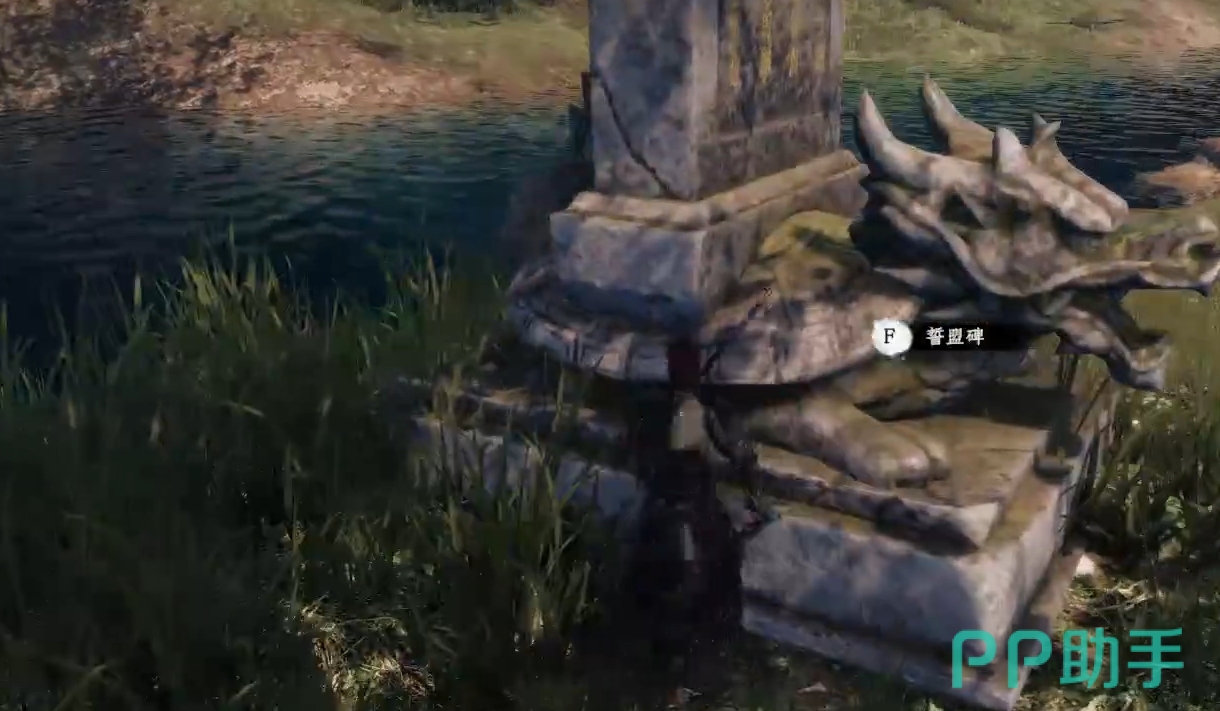 各位通过驿站来到誓盟碑区域,然后骑马前往誓盟碑所在之处,找不到的玩家可在地图上标点(931,534),到这就能直接找到誓盟碑。在这里与誓盟碑交互后能了解到四兄弟的名字,此后立刻离开,若继续等待会触发剧情,并与翁城铭对战。此次战斗只要触发就无法逃避,且翁城铭实力很强,能轻松秒掉刚入江湖的玩家,因而各位最好在战斗触发前立刻避开,待练度上来后再来誓盟碑这里找到。