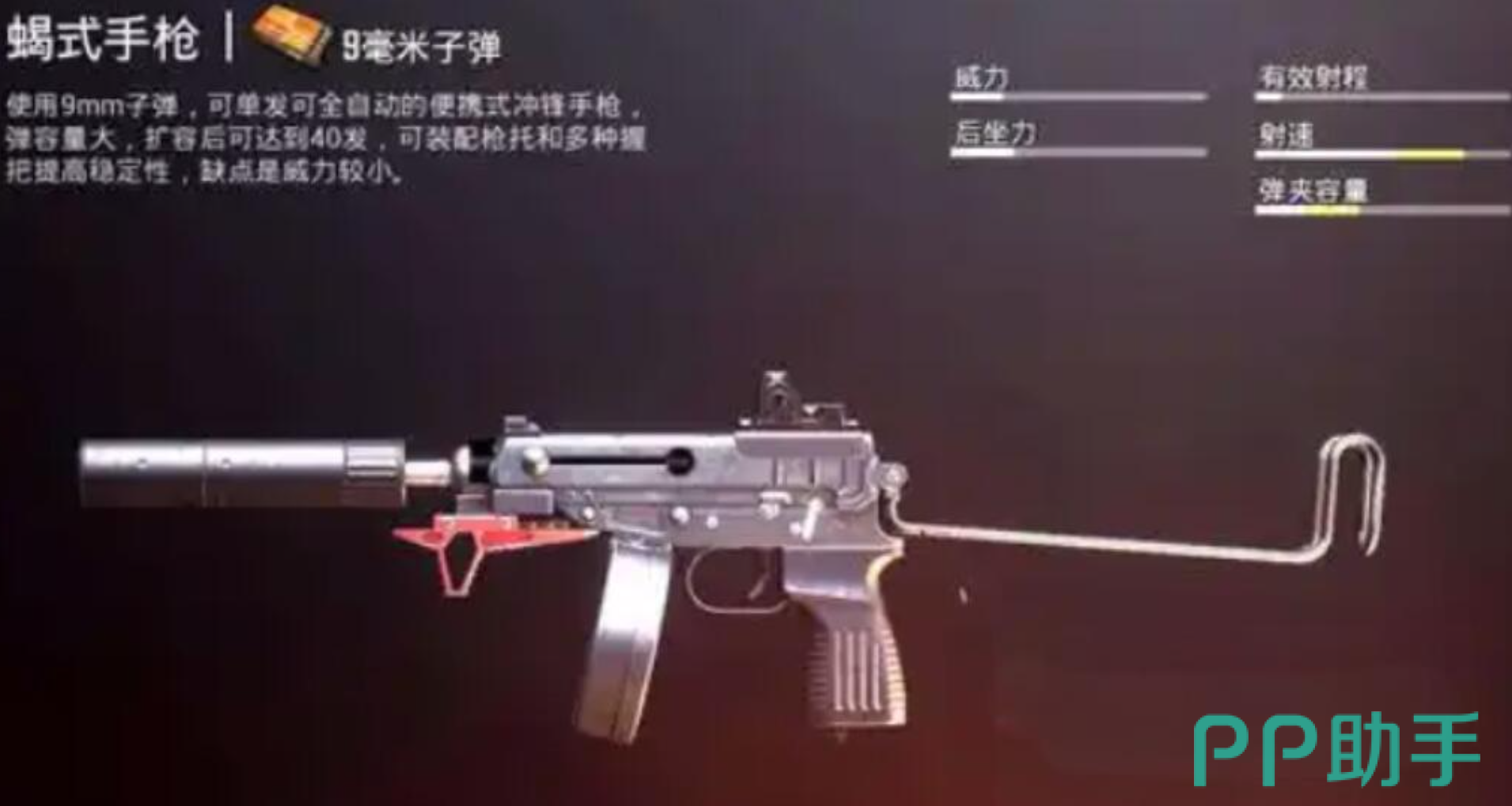 蝎式冲锋枪:这把枪的枪械体积特别的小,稳定性也比较高,射击速度比较快,比较轻便也特别的耐用,只是玩家也需要注意它的射程比较短,弹夹容量也不是特别的大,如果玩家在使用的时候需要搭配长枪管,才能够达到中距离的战斗,玩家为了尽可能的减少换弹的次数提升持续性的火力,那么在游戏不断深入之后,玩家就需要扩充弹匣,如果需要隐秘战术的话,玩家需要搭配消音器,另外在瞄准镜方面的话,玩家也需要搭配合理。