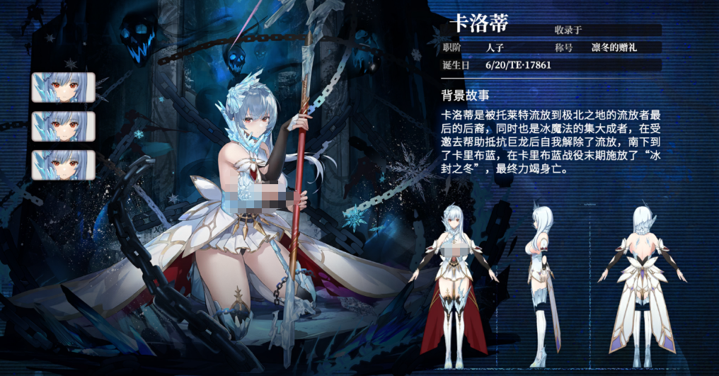卡洛蒂是一位擅长冰系法术的弱点型星痕,她的被动技能强化了我方全体成员施加的冻伤效果,使得每次冻伤的持续时间增加一回合,同时场上每存在一层冻伤状态,就能大幅提升凭依魔女的护甲值和破防效果,她的凛冬风暴技能召唤出刺骨寒风席卷全场,对所有敌人造成148%的伤害;特别是在战斗中首次使用时,还会给所有敌人一次性添加两层冻伤,之后每次施放都会追加一层冻伤,另一项技能纯白大地则是团队生存保障效果,它能瞬间恢复所有队友30%的生命值,并暂时提升他们的攻击力持续两回合。