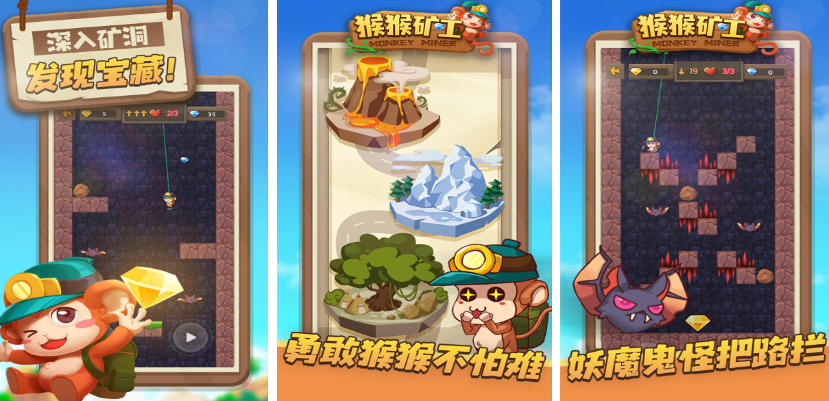 猴猴矿工是结合了挖矿、肉鸽和弹跳类玩法的简单小游戏,精彩好玩的挖矿环节也吸引了很多的玩家,操控可爱的猴子矿工在地图上可以尽情冒险,挖矿+冒险的主题玩法让游戏的互动性更强,模拟矿工挖矿的环节真实性还是不错的,一起进入本作以猴猴矿工的身份执行任务吧。