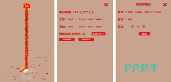 简单的操作方式,屏幕中会呈现出不同的鞭炮,刚开始可能只是一小颗而已,人家通过点击屏幕就能够将这颗小鞭炮点燃,从而通过逐渐积累的方式就能形成一大挂鞭炮,之后就需要点击屏幕完成点燃,游戏的画面中就能够释放出喜庆洋溢的气息,甚至还有多样化的文案,任凭玩家选择,在鞭炮点燃之后也会呈现出不同的字眼。比如吉祥以及健康等。