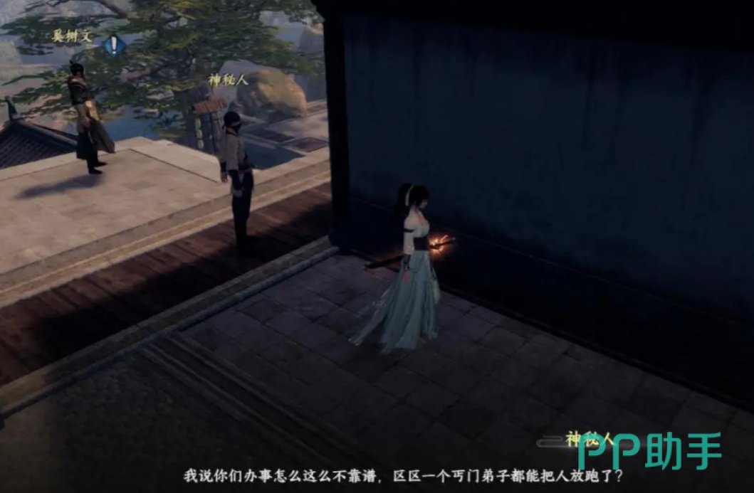金疮药可以到不夜京1031.30坐标处,找柳回春对话并购买,成功救助后到990.273坐标处,走近后会自动触发两个神秘人对话的剧情,从对话中我们能获得他们在追捕丐门弟子的关键线索。