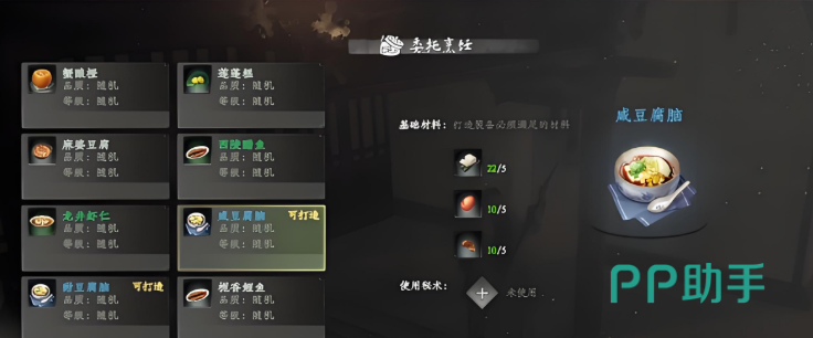 玩家在了解事情情况后,就可以获得咸甜豆腐的配方,然后我们打开背包,学习制作即可,正式制作的时候需要相应的豆腐材料,我们去找枰栌杂货商也就是950.783坐标处,与其进行对话就可以购买到相应的材料。