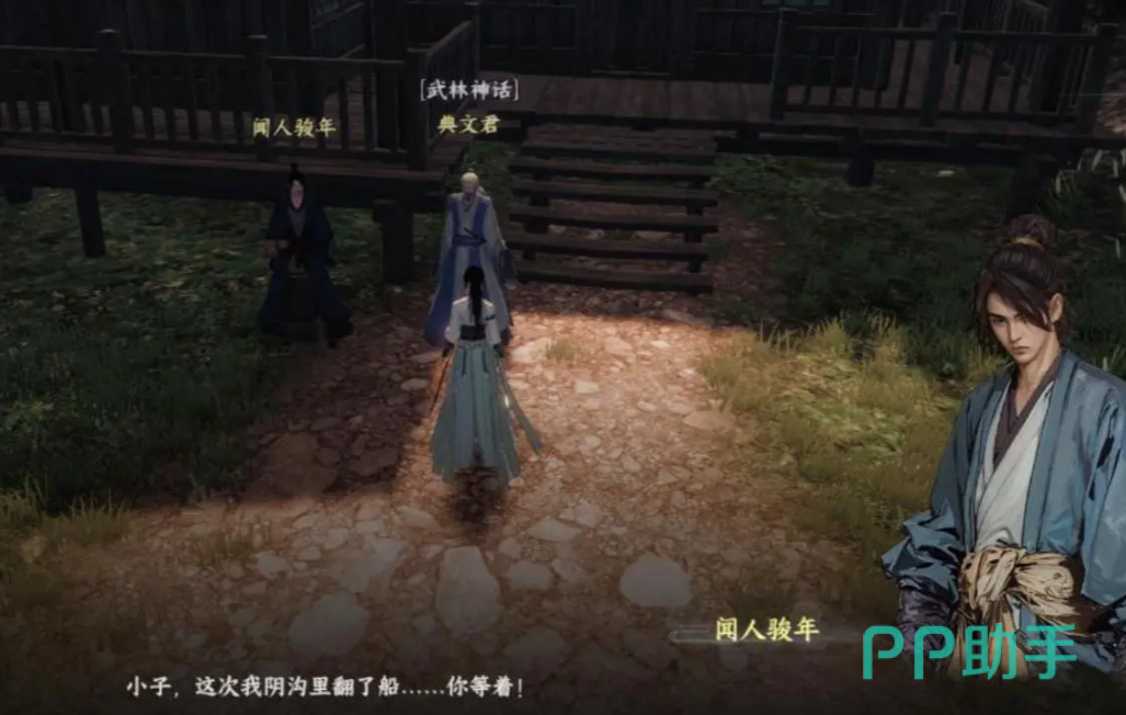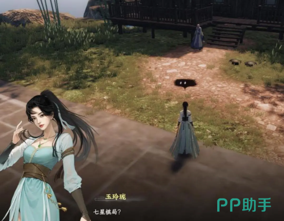 继续前进就能看到七星棋局,我们在棋盘的地方右转,到306.1017坐标处会遇到典文君,和他进行交谈经历剧情后,到后面圆盘302.1038的地方,把他的棋奴棋侍全部给击败,回去原来的地方再找典文君进行交谈,选择我以及击败了棋奴棋侍。