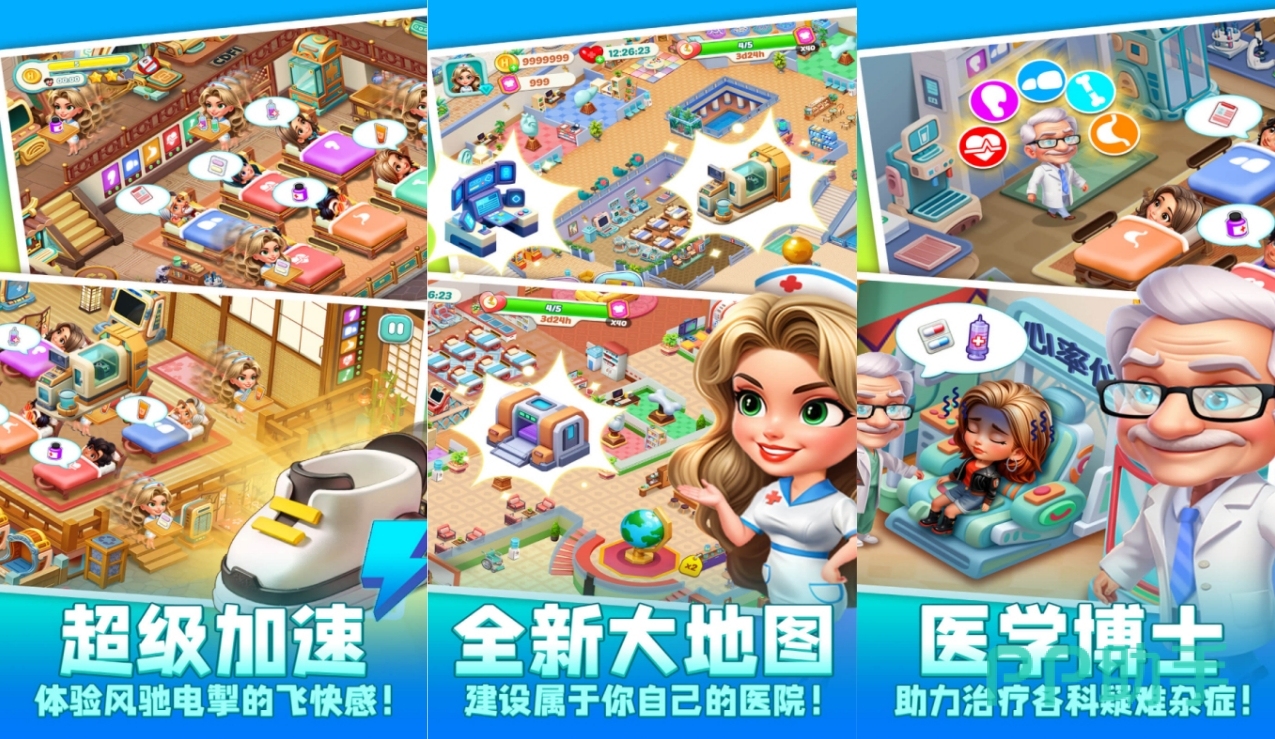 精致Q版画风,玩家将扮演一间私人医院的经营者,从零开始招揽医学博士,建设医院设施,并对其中的各个环节进行逐步升级,可以亲自前往每个区域对病人的床铺和疗法进行安排,也可以用加速道具体验一把时光飞逝的飞快感,同时病人角色也不是冰冷数据,他们有着各自独特的形象与性格将带给你真实的剧情与对话呈现,让你在经营过程中不至于枯燥,随着经营进度的加深,还能看到自己医院的等级和各项数据,从而拥有满满的成就感。