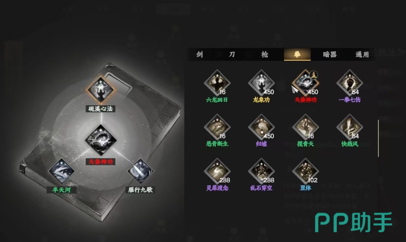 第4个冥王降世,属于阳系灼烧流的核心心法,作用是提升灼烧伤害,并附加增伤效果。在灼烧值达到额定值后,还能触发范围伤害,配合阳属性武学爆发力很强。第5个龙象攻,适合刚系武功路线,实现无限连击,是打造伤害爆发流的好选择。第6个天上经阴内功,是阴系玩家首选,使用后能打出无限连招,附加的冰冻控制效果出色,可掌握战场节奏。