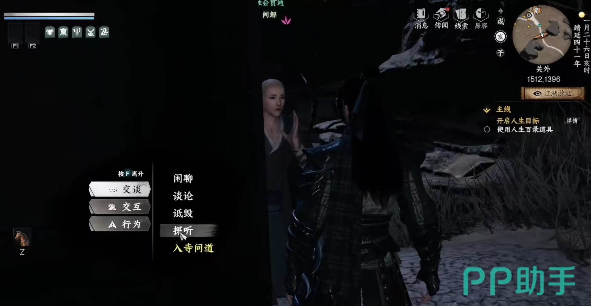 玩家在游戏中想要加入嵩室山,需要先完成相应的前置任务,帮助嵩山的刘正风举行金盆洗手的仪式,这是加入该门派的前提条件。同时要看一下自身的善恶值,一定要是正数,如果当时的善恶值不足,可以先去完成一些善行任务来提升,然后再过来完成。在地图中找到坐标1512、1396处的npc解间,并和他进行对话,就能够触发入寺寻道支线任务。在将解间击败之后可获得一封嵩室山的推荐信。