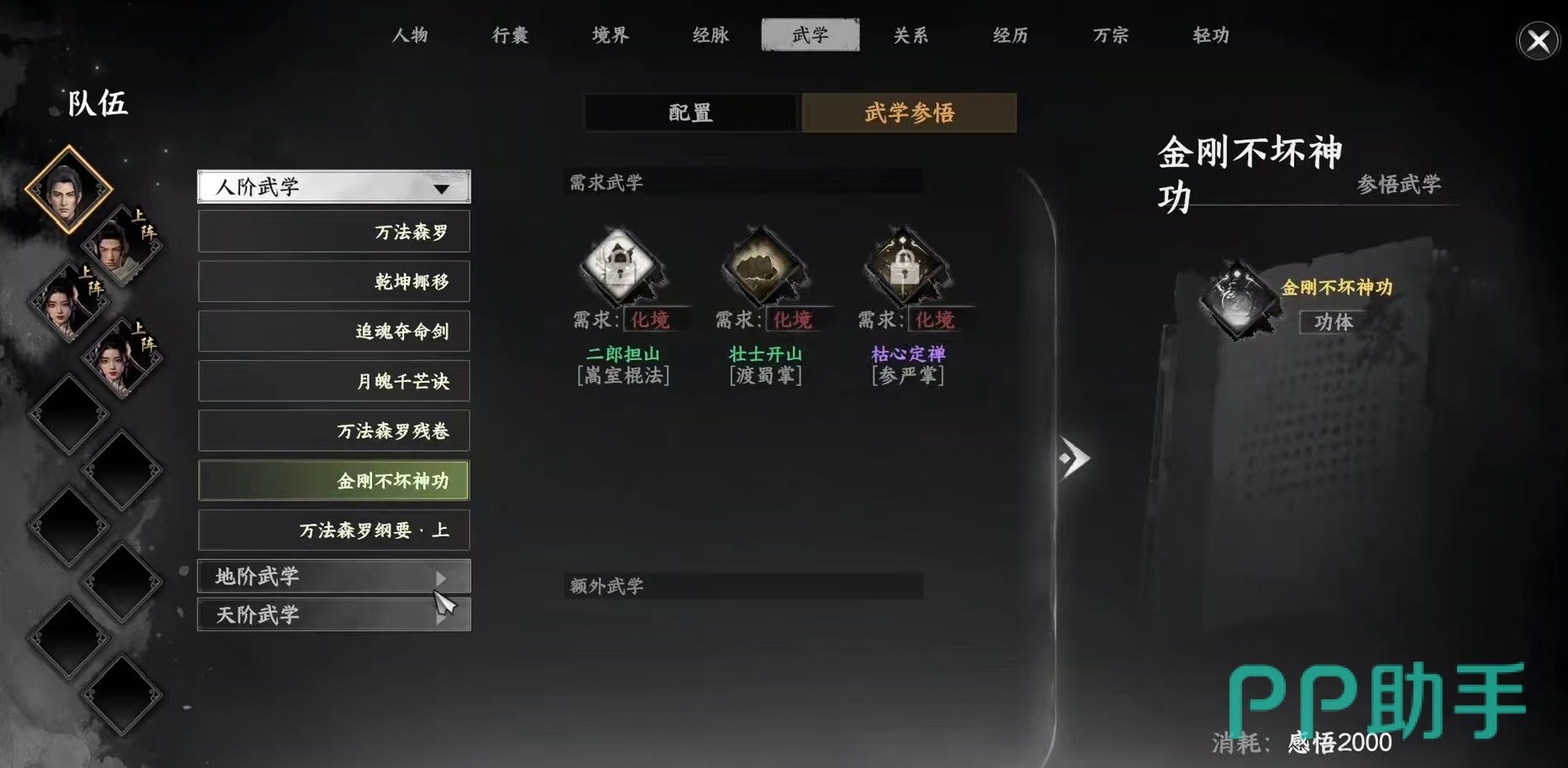 再加入之后,接下来的晋升和其他门派非常相似,达到不同的级别,可以获得更多的武学。嵩室山的武学非常丰富,涵盖了棍法、拳法、内功心法以及防御技能,很适合大家在这里投入一定的时间。防御技能例如金钟罩,铁布衫等,可以显著增强角色的防御能力,提高生存几率。内功新法有洗髓功、万象霜天等,其中洗髓功是绝级内功,需要大家在嵩室山晋升掌门前主持诵经大会才能得到。拳法方面包括罗汉拳、韦陀掌等,其中明禅拈花指的威力非常惊人,是嵩室山的强力拳法之一,一定要拿下。
