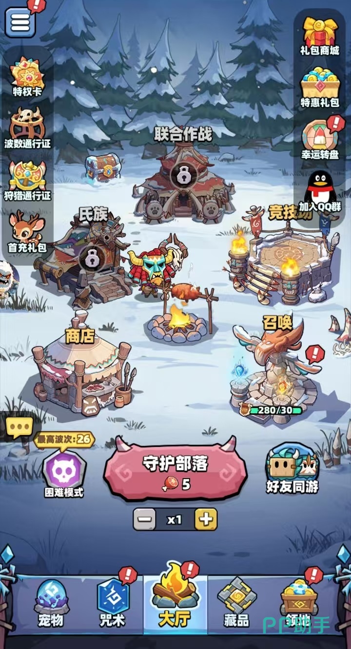 在玩法方面采用了多人联机塔防设定,支持4名玩家同屏进行战斗,玩家可以选择互坑,或者是强强联手一起对敌。游戏在玩法方面还融入了咒术召唤和融合机制,通过这样的多重元素组合,带来全屏爆发等炫酷玩法。需要玩家在战斗中时刻观察场上局势,灵活构建不同的战术体系,另外游戏内涵设置了宠物系统,独特的宠物技能可以帮助玩家更好的战斗。这样的设定也使游戏具有较强的策略性,因为面对的不同敌人有不同的特点和弱点,需要根据这些特点来调整自身的阵容,尤其是防御塔的布局和技能使用时机尤为关键,同时也要注意合理分配资源,才能够成功守住防线。