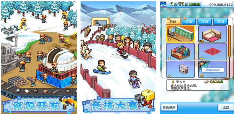 这款滑雪场模拟类的手游作品拥有超多的模式可选,玩家可扮演滑雪运动员和滑雪场老板双重角色,可以自定义滑雪场的地形跟比赛项目,各类滑雪方面的比赛等待着玩家们化身运动员参加,像素风的精美画面跟滑雪特效带来了视觉享受,自定义培养运动员和设备的操作设定也增加了本作可玩性。