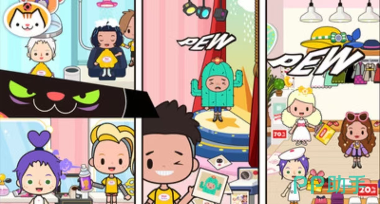 《米加小镇:世界》模拟了一个小镇的生活,玩家将作为小镇上的一个成员,和其他的居民们一起进行生活,可以看到很多日常生活中的建筑,可以去到学校当中,还可以看到很多的商店,宠物医院的等。角色会有很多不同的装扮,可以每天搭配不同的服装和造型,对自己的家园进行装修。邀请朋友一起来家中参观,游戏也设计了厨艺比赛,可以参加一些不同的派对和走秀。