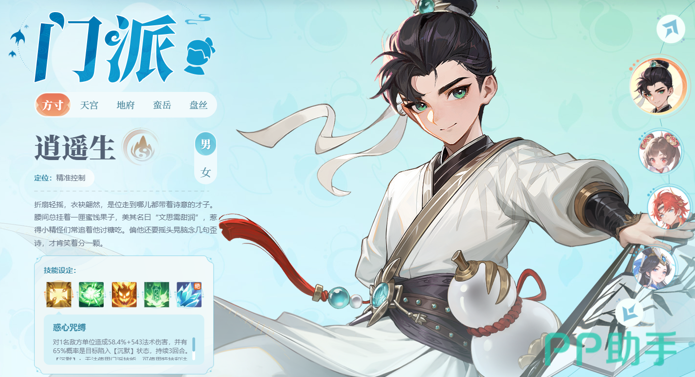 专精于战场控制,通过沉默、中毒、失心等负面状态打乱敌方节奏。其技能"惑心咒缚"有65%概率使目标沉默3回合,"万毒攻心"可造成群体中毒效果(每回合损失最大生命的5%)。该职业对速度属性要求最高,需确保先于敌方出手,控制命中建议堆叠至75%以上。方寸在PVP和高难度副本中表现亮眼,但操作难度较大,需要精准预判敌方行动序列,适合策略型玩家。