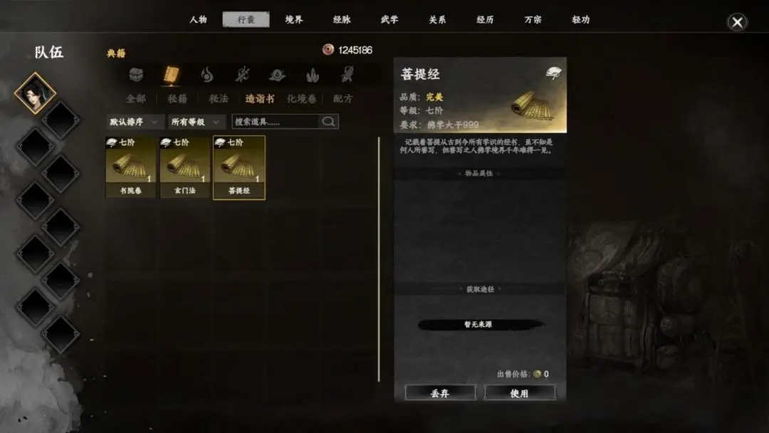 菩提经在云鹤村获取,需要在村中触发“云鹤疑云”奇遇,将奇遇顺利做完就能拿到了;最后一本典籍要从雁州去往迦南,这个地方能触发”迦南剑”奇遇,跟着系统的引导,进入迦南遗迹,在这里就能拿到书院卷。