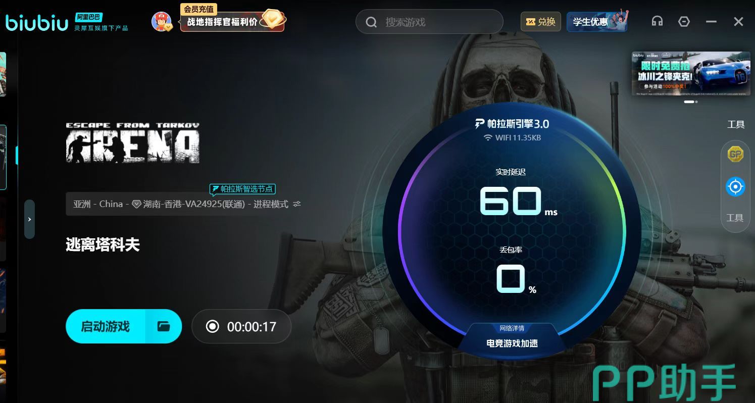 最近biubiu联合冠军选手Aixleft升级的帕拉斯3.0引擎,专为复杂网络环境设计,数据处理能力与实时调度效率倍增,能近乎完美规避冲突和传输瓶颈,实现几乎0丢包的网络表现,为逃离塔科夫这类跨国大型游戏提供最高效的下载保障。